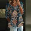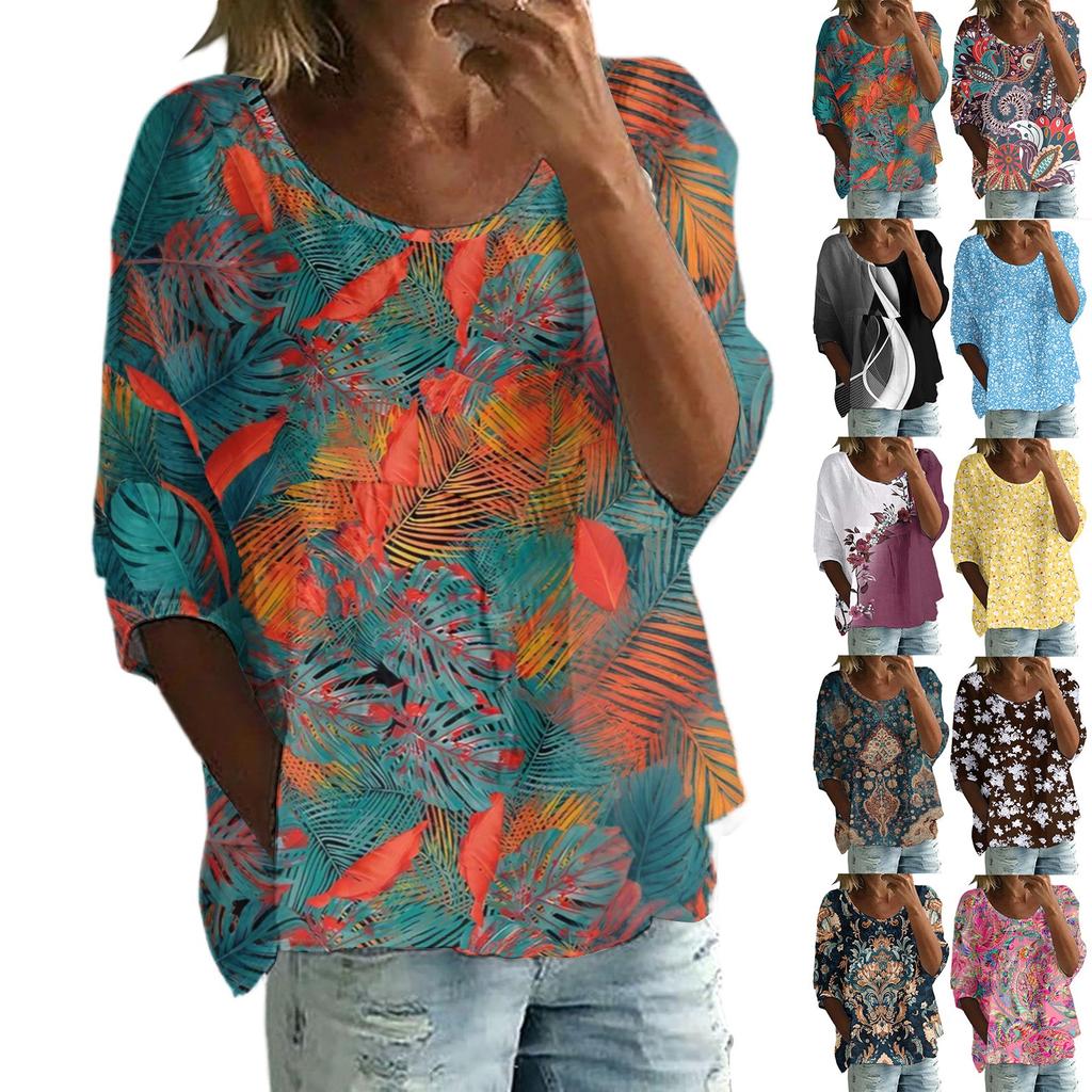 Women's Casual Fashion Three-quarter Sleeve Loose Round Neck Floral Print Top