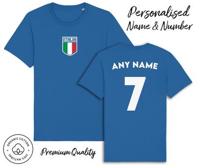 Italia Italy T-Shirt Personalised Name and No Adult Kids Baby, Football 6 Nations