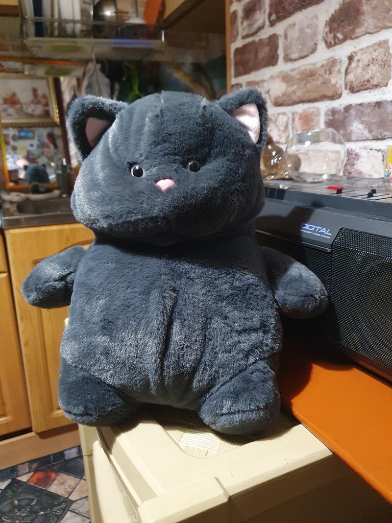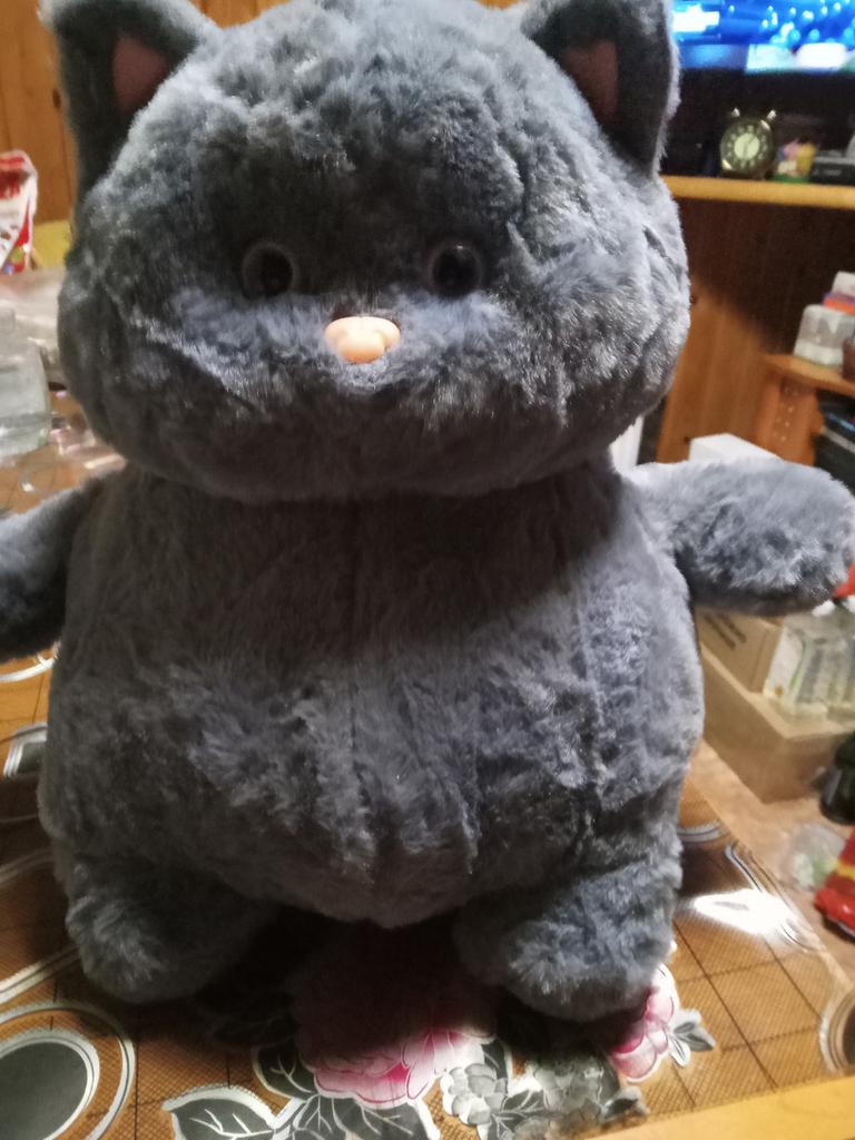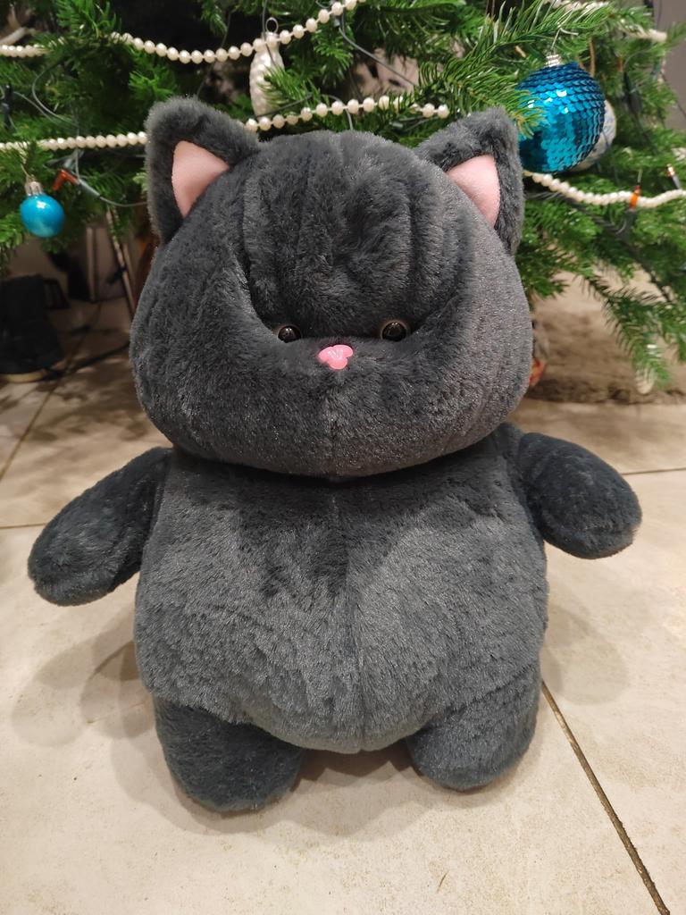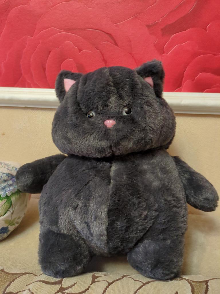 The cat is chubby, soft, beautiful, and well-sewn. The kitty went as a gift for the grandson's birthday.