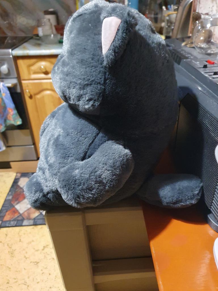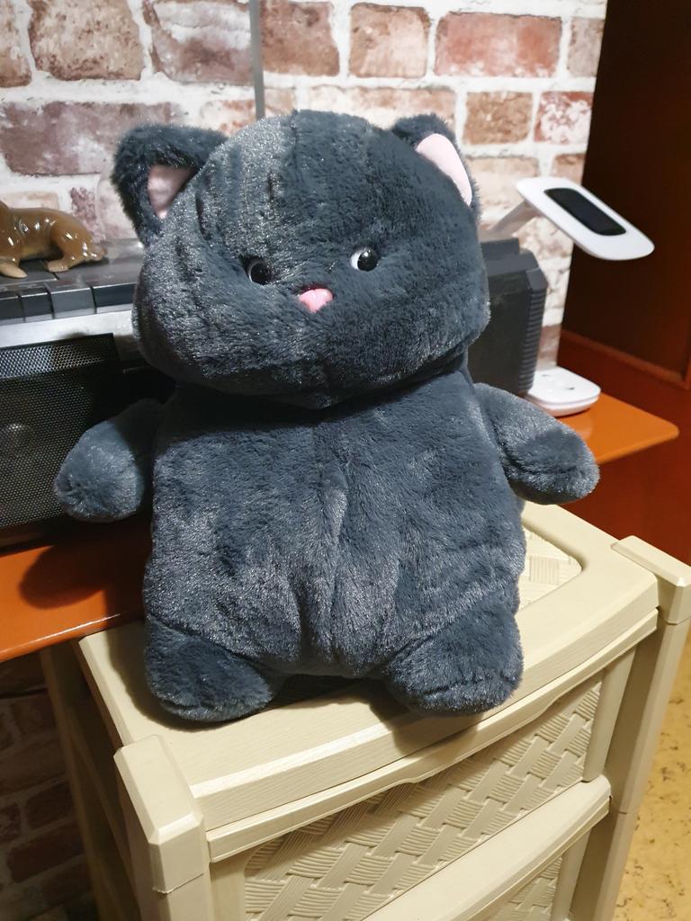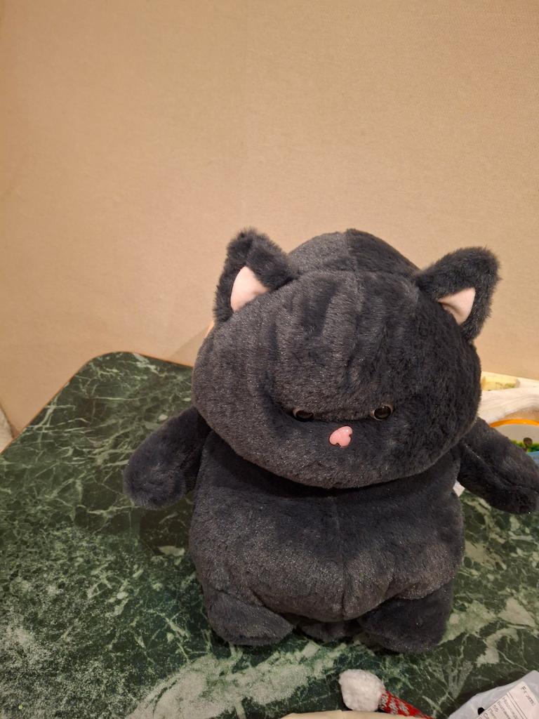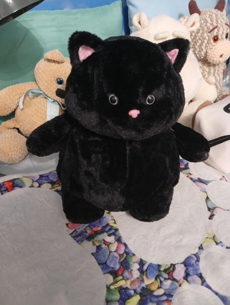 The cat is chubby, soft, beautiful, and well-sewn. The kitty went as a gift for the grandson's birthday.