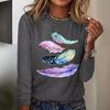 Autumn Feather Pattern Printed Long Sleeve Round Neck Top Women's T-shirts
