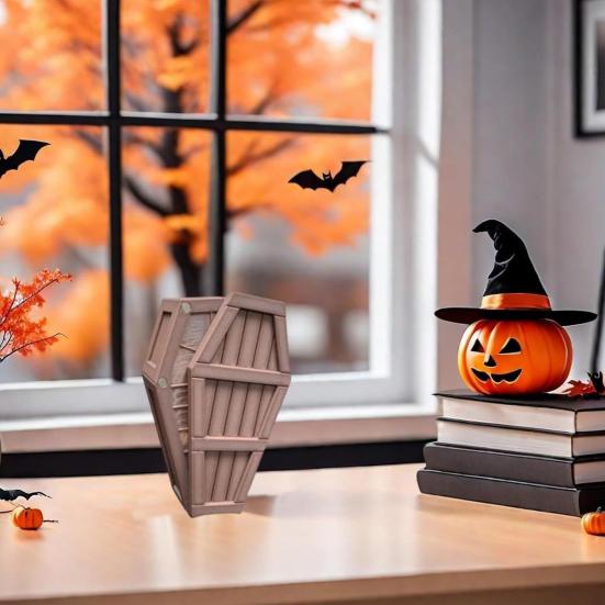 Realistic Wood Grain & Gothic Details: Crafted with intricate details, this 3D-printed casket boasts a hauntingly realistic wood grain finish and Gothic aesthetics, adding an eerie charm to Halloween decor or party settings.