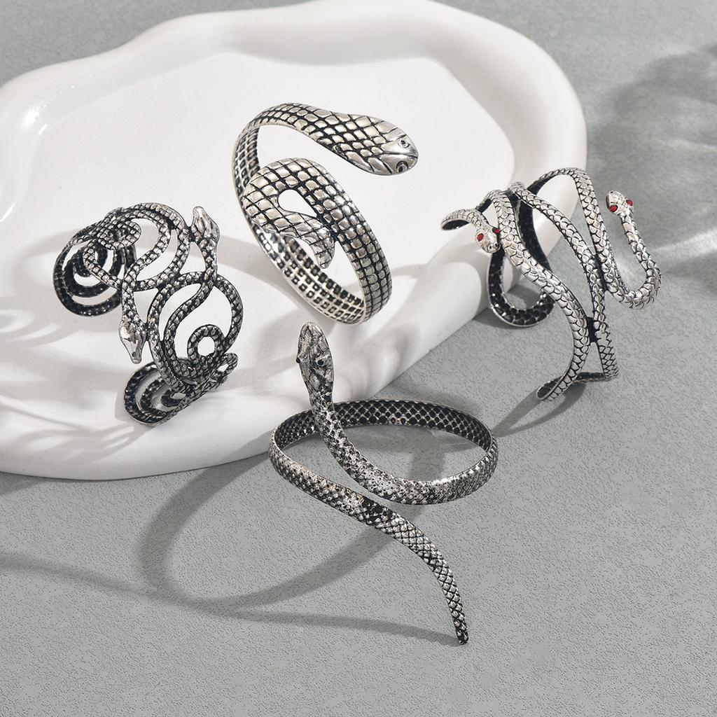 Hip Hop Style Bracelet Set Personalized Snake Design Diamond-encrusted Open Bracelet Versatile Niche Jewelry Women