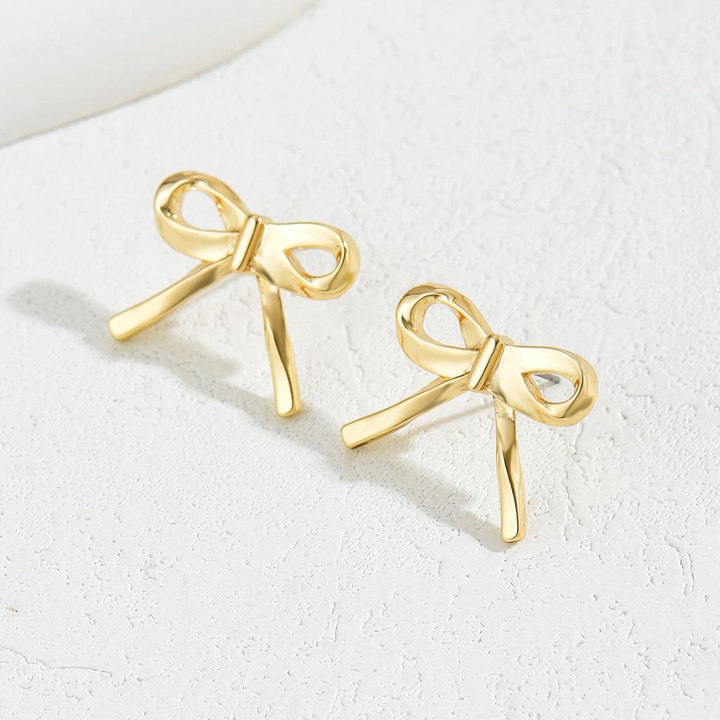 Factory Fashion Niche Design Sense Bow Metal Stud Earrings Women's Simple Fashion Versatile Personality Earrings Earrings