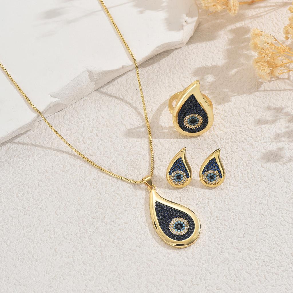 Popular Women's Earrings Necklace Set Personality Demon's Eye Hip Hop Design Ring Versatile High Long Item
