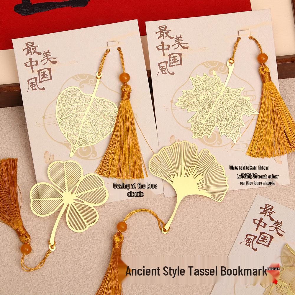 Brass Maple Leaf Pendant Metal Bookmark - Ancient Style