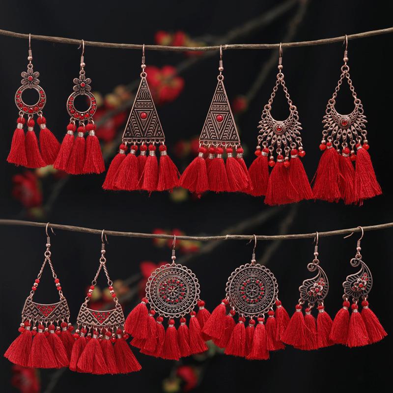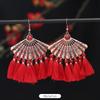 Vintage Bohemian Red Tassel Earrings Female Long Temperament Earrings Vacation Photography Bridal Earrings