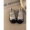 Bow Round Head Thick Sole Color Matching Small Leather Shoes Women's Summer New Pearl One-word Buckle Mary Jane Shoes