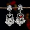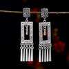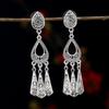 Retro Personalized Tibetan Silver Fringed Stud Earrings Long Temperament Versatile Earrings Exaggerated Metal Vacation Earrings Women