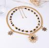 Personality Trend Retro Alloy Sunflower Pendant Double Stacked Necklace Casual Color Beaded Women's Accessories