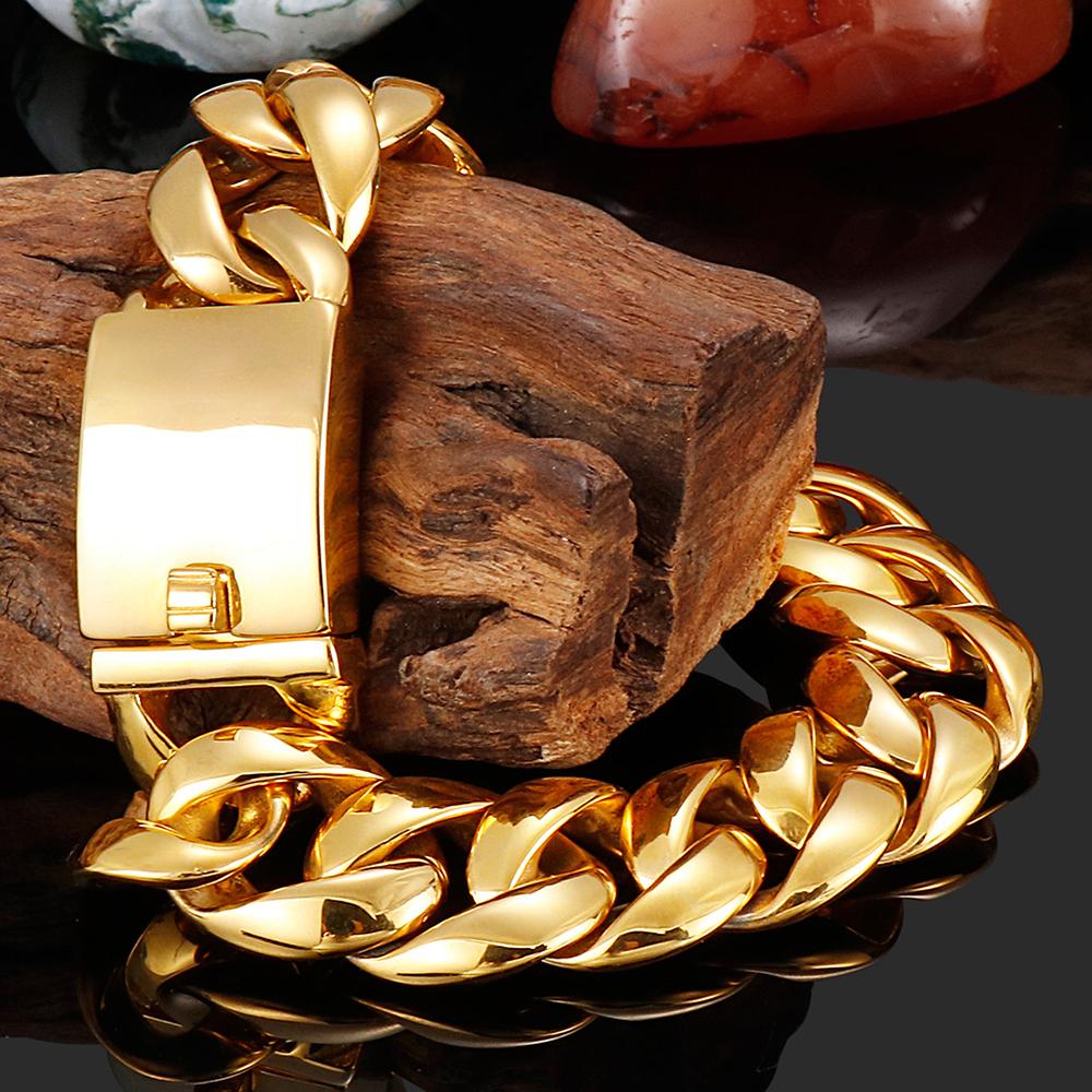 17MM Thick 316L Stainless Steel Cuban Link Chain Luxury Gold Color Men's Bracelet Minimalist Retro Male Jewelry Gifts