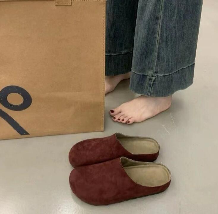 Women's Slippers Closed Toe Round Toe Suede Clogs Sandals Autumn New Retro Solid Color Flat Bottom Women's Mules Shoes