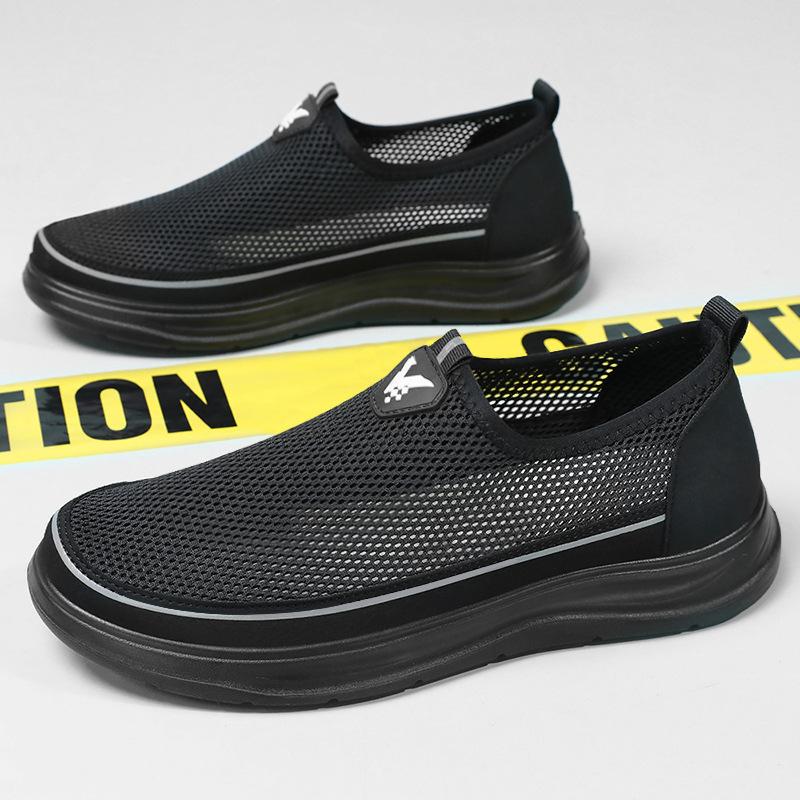 New Men's Casual Mesh Flats Breathable Shoes Male Lightweight Round Toe Flat Shoes Comfortable Slip-On Walking Shoes