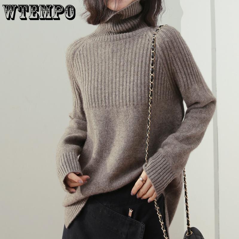 Autumn New High Neck Retro Pullover Sweater for Women Solid Color Knit Sweater