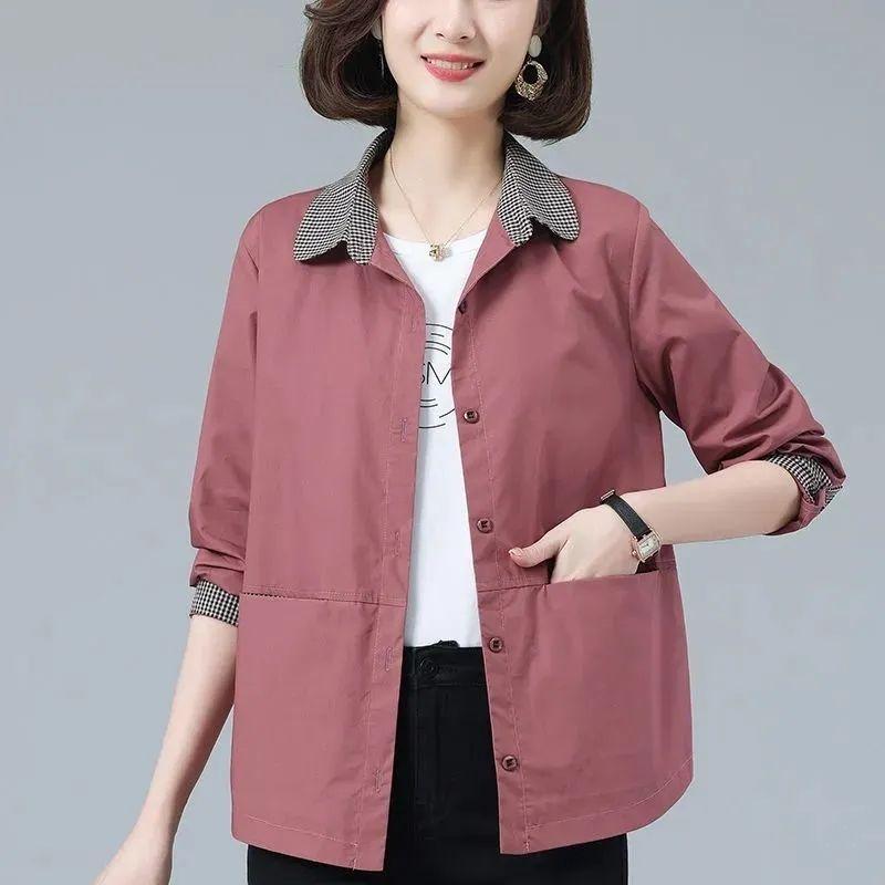 Women's Spring and Summer Versatile Color-Block Shirt Jacket Korean Style Plus Size Casual Shirt Fashion Slimming Outerwear
