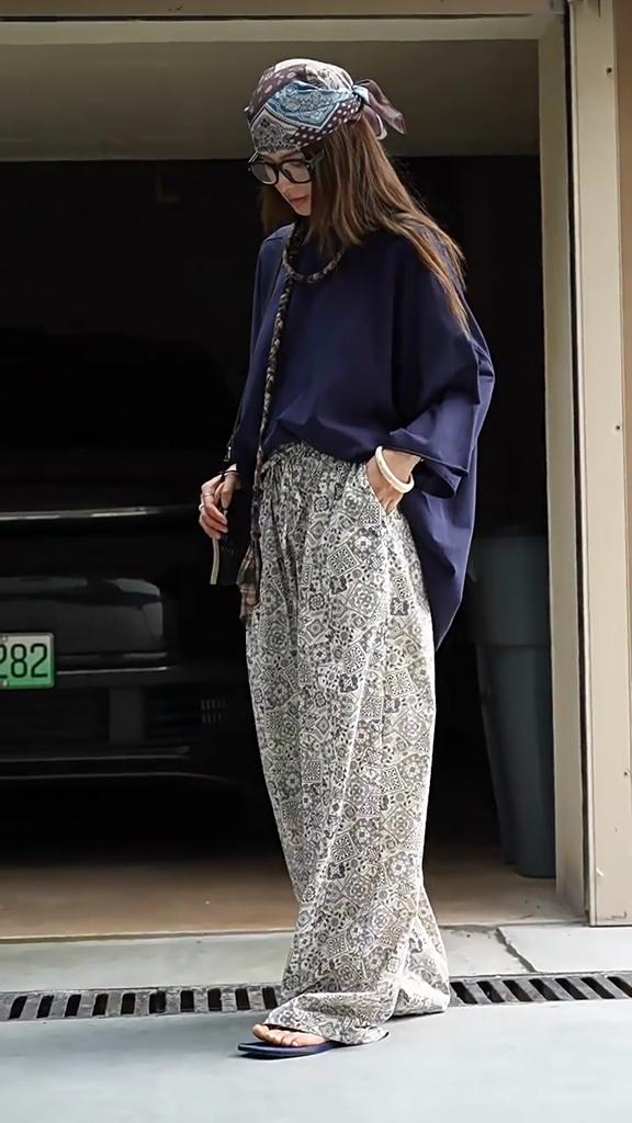 Johnature Bohemian Ethnic Style Cashew Flower Wide-leg Casual Women Pants Summer Long Casual Trousers