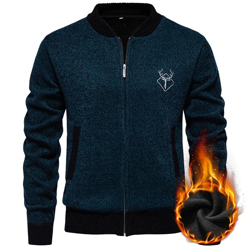 Autumn and Winter Casual Knitted Cardigan Plus Velvet Thickened Men's Baseball Collar Jacket Sweater