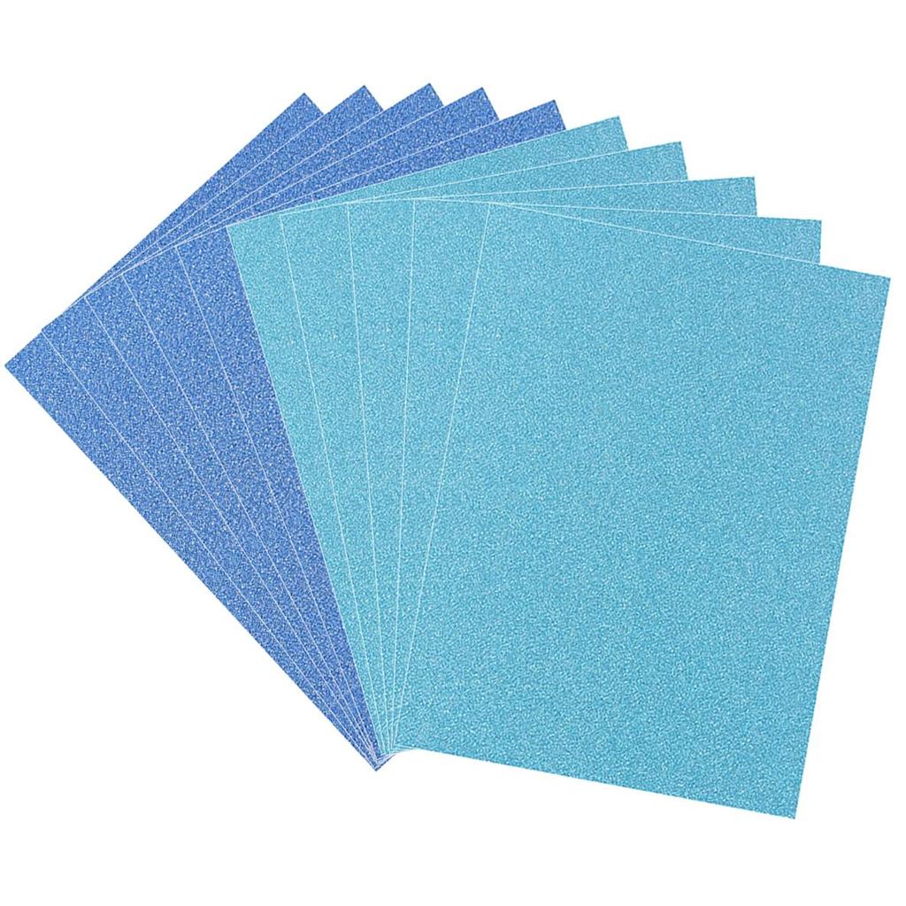 [Product Specifications] Set of 10 glitter sheets (5 blue, 5 sky blue). Size: A4 size (210 x 297 mm).