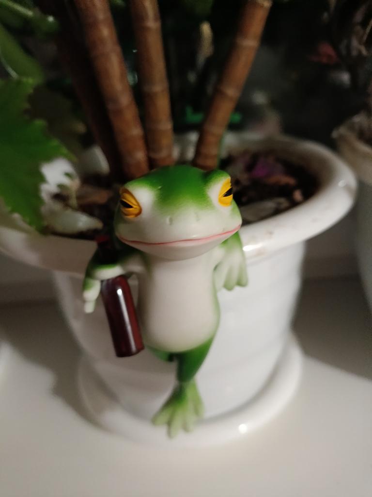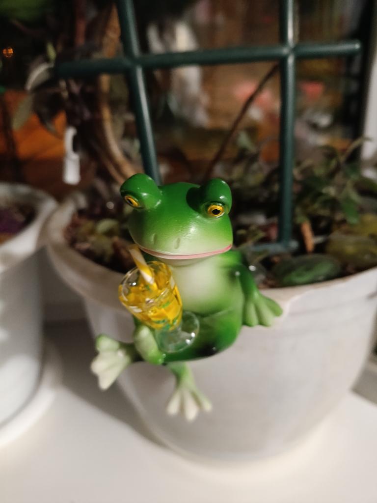 Cool frog, looks good on the flower pot