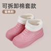 New Rain Shoes Heightening Women's Fashion Water Shoes Waterproof and Wear-resistant Warm Velvet Short Tube Non-slip Rain Boots Rubber Shoes Kitchen