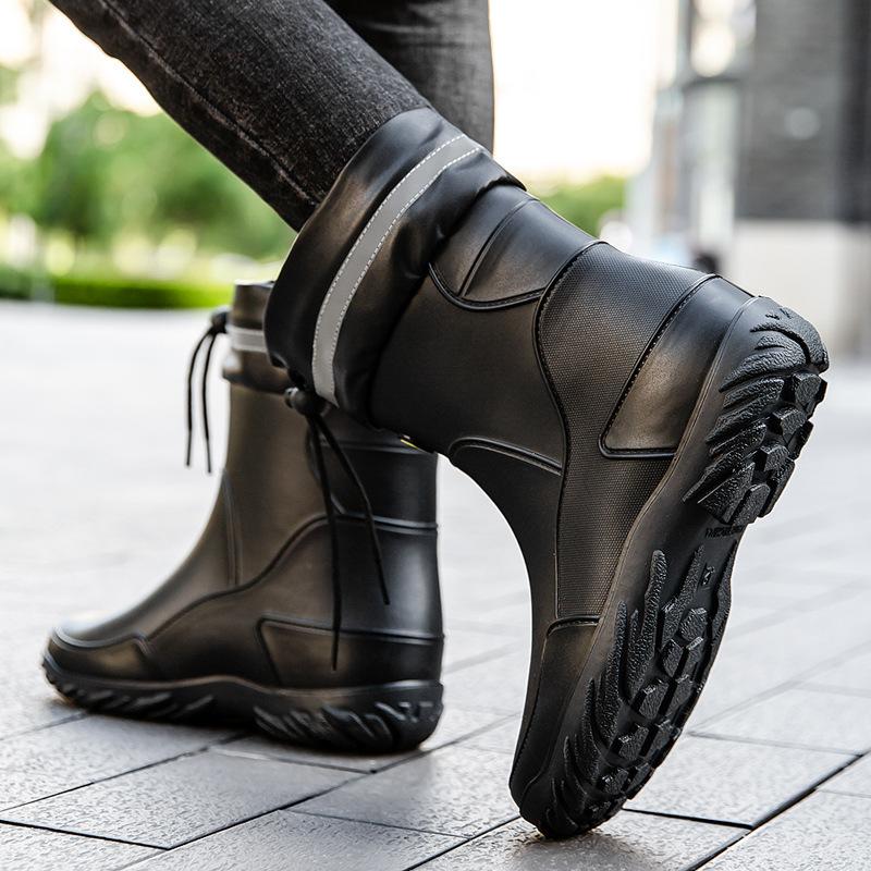 New Men's Medium Tube Rain Shoes Non-slip and Waterproof Fashion Rain Boots Rubber Shoes Work Water Boots Fishing Short Tube Water Shoe Cover Shoes