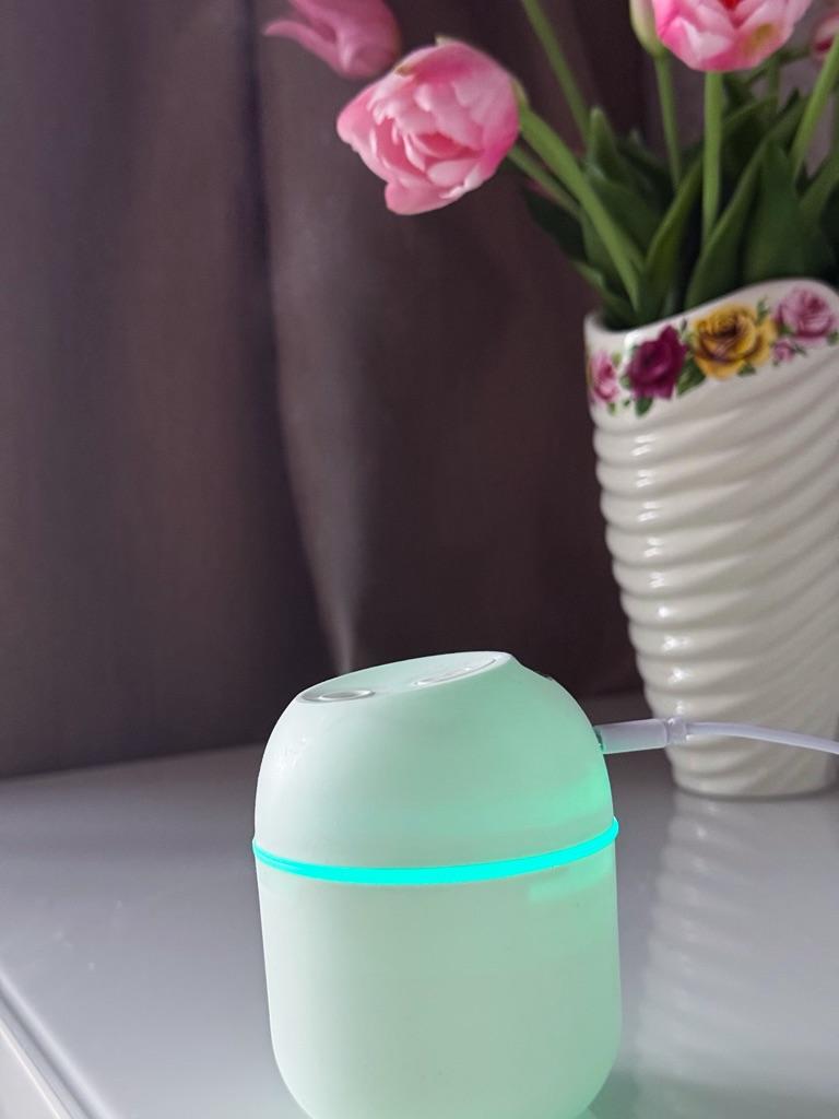 Oil Diffuser The diffuser has a USB cable The diffuser is suitable for dispersing scents in the home or car. Available in colors: white, pink, green Can hold 220 ml. Can work 4 to 6 hours A high-quality and good product emits pleasant smells, highly recommended to buy! The product arrived to me with fast and secure delivery ๐ฆ