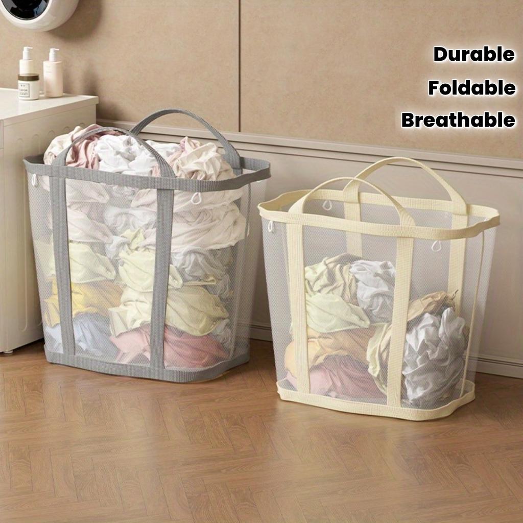 1pc Foldable Breathable Mesh Laundry Basket with Reinforced Handles, Collapsible Rectangular Storage Bin for Bathroom, Wardrobe, Dorm, Travel
