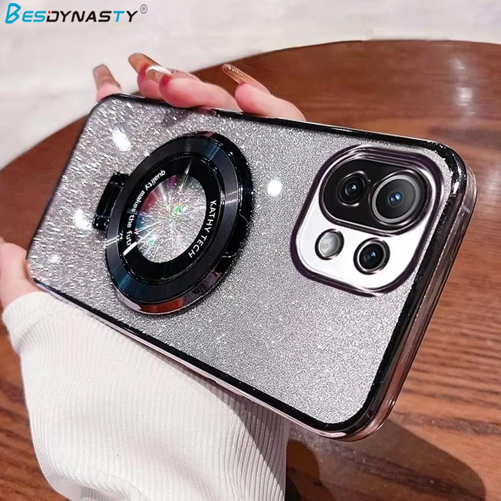 Mi11lite Glitter Plating Holder Silicone Case For Xiaomi Mi 11 Lite 5g Ne 11t 13 13t Mi13t Pro 12 12t 10t 14 Stand Cover Mi14t