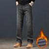Winter Fleece Warm Men's Jeans Classic Loose Straight Plush Denim Pants Thickened Fashion Stretch Casual Thermal Trousers 42 44