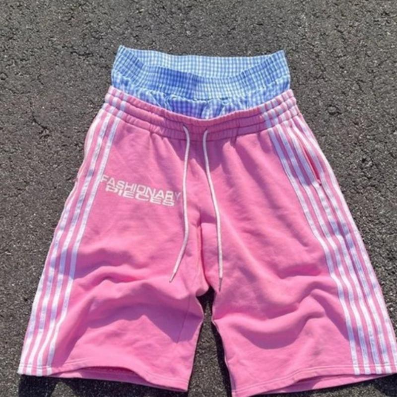 European and American Retro Men's and Women's Double Waistband Splicing Design Sense Y2K Casual Printed Sports Style Shorts