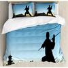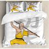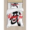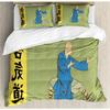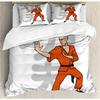 Chinese Kung Fu Polyester Duvet Cover Set Eastern Martial Art Sports Themed Cartoon Warrior In Traditional Clothes For Kids Teen