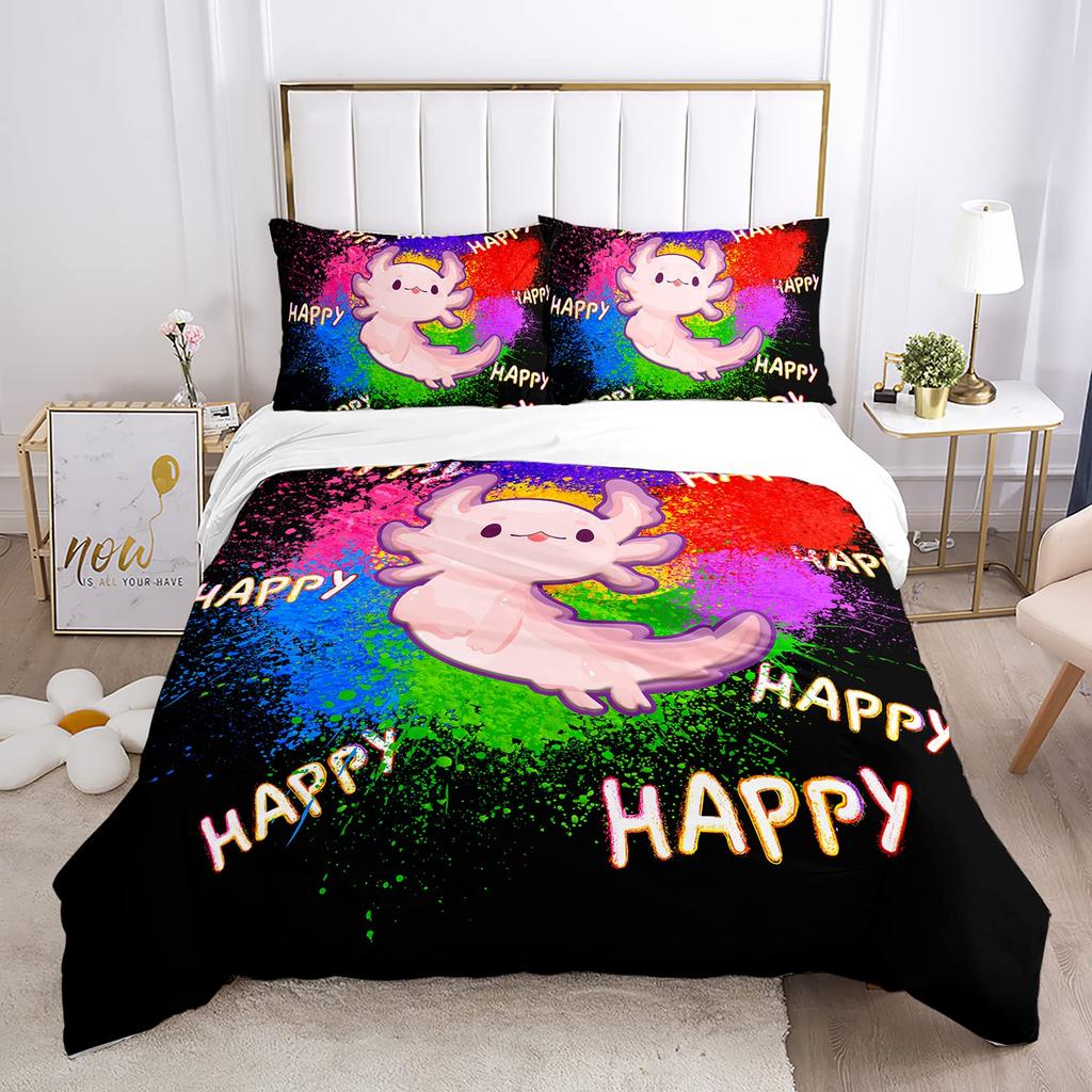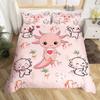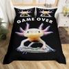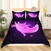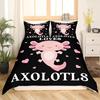 Cute Axolotl Duvet Cover Set Full Size Cartoon Salamander Bedding Set Kawaii Animals Comforter Cover Constellation Black Decor