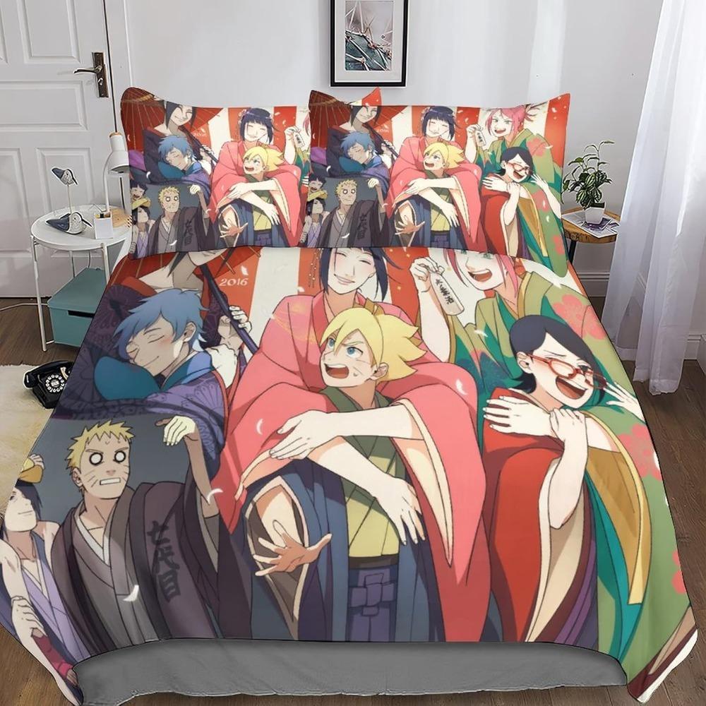 Anime Naruto Microfibre Bedding Sets, Children's Birthday Gift with Zip Room Decor for Teenagers Adulte 3-Piece Duvet Cover