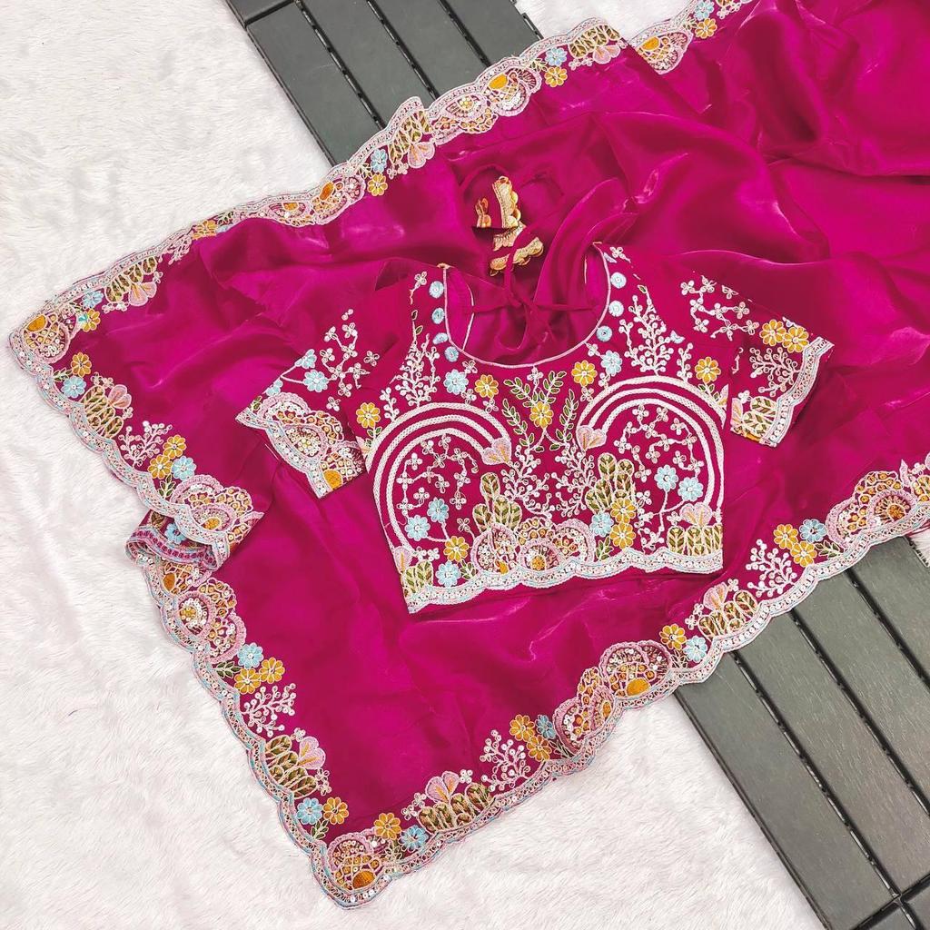 Saree Work : Heavy Embroidery Threads Codding & Sequins Work