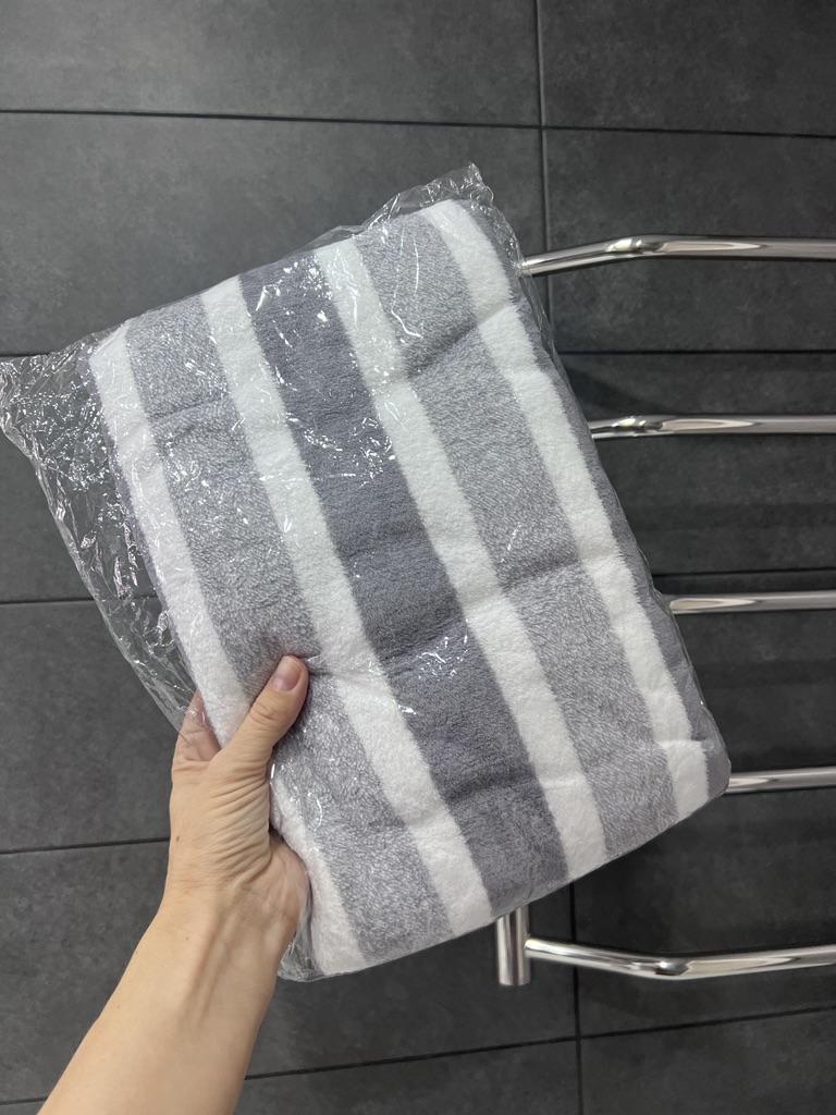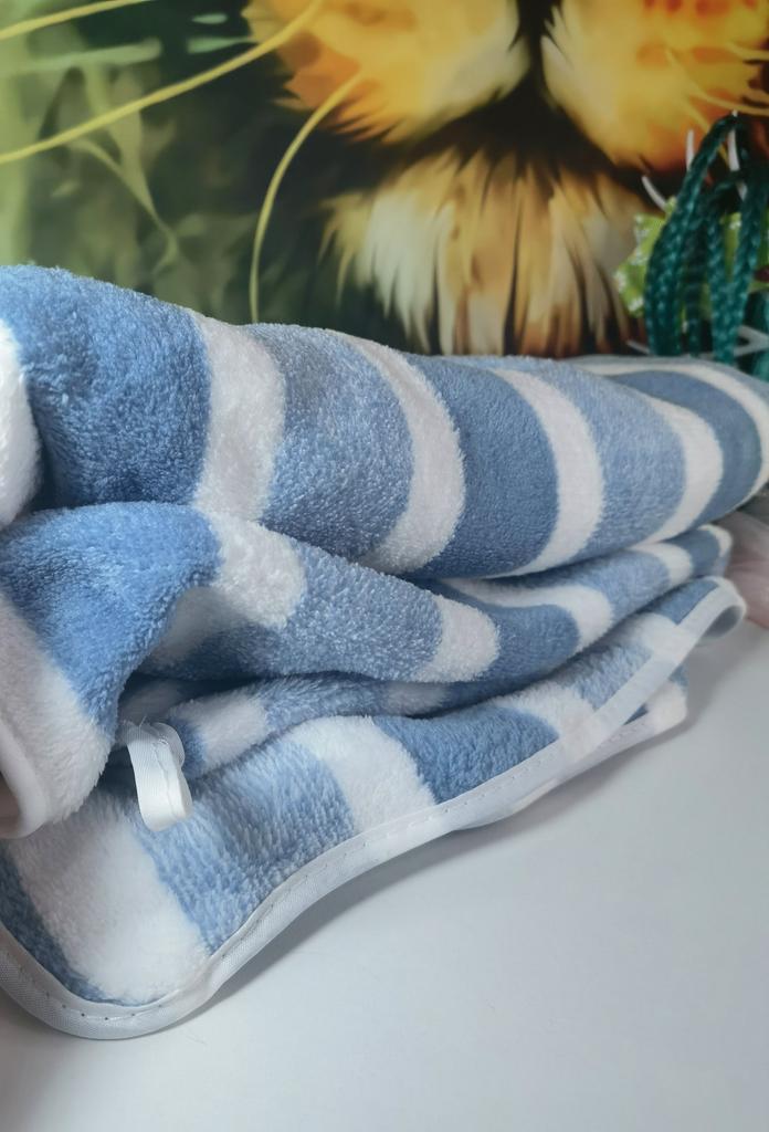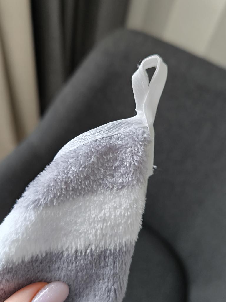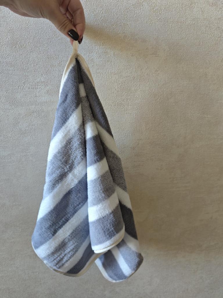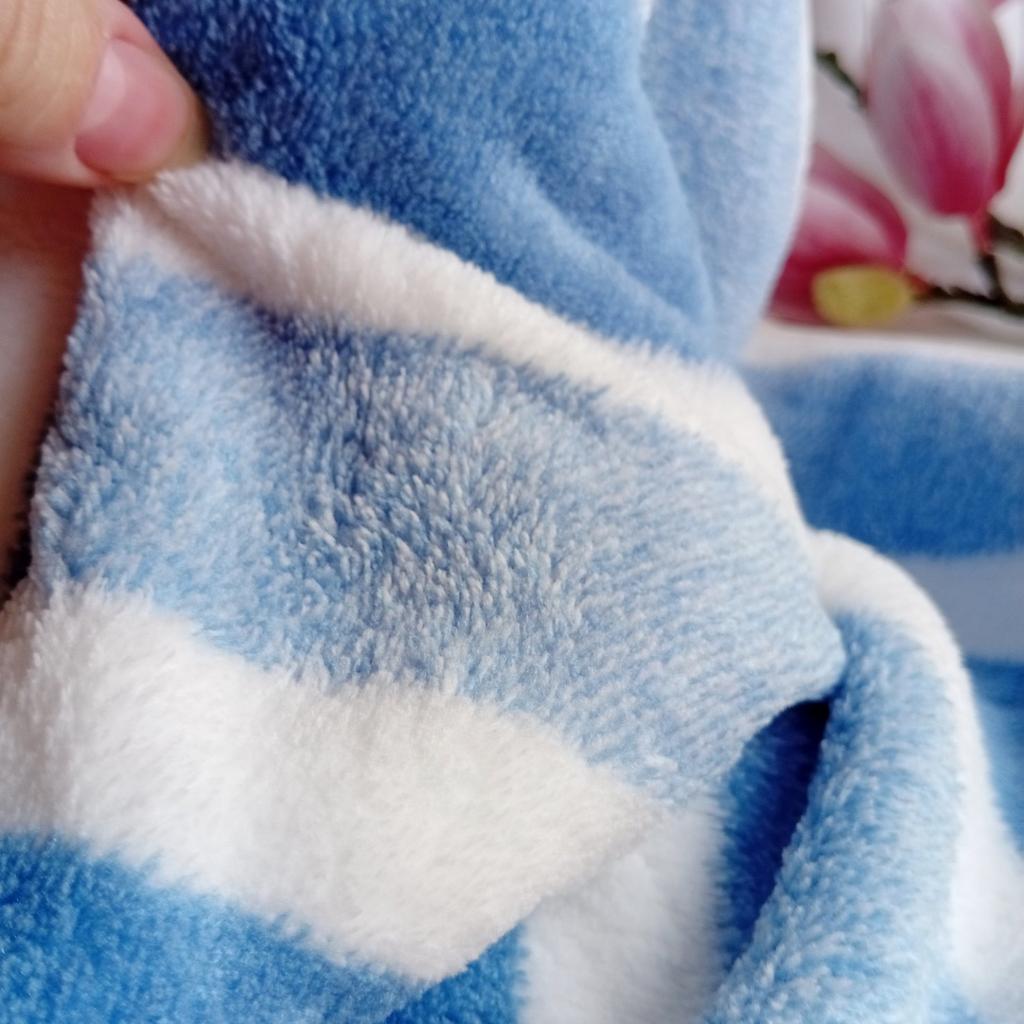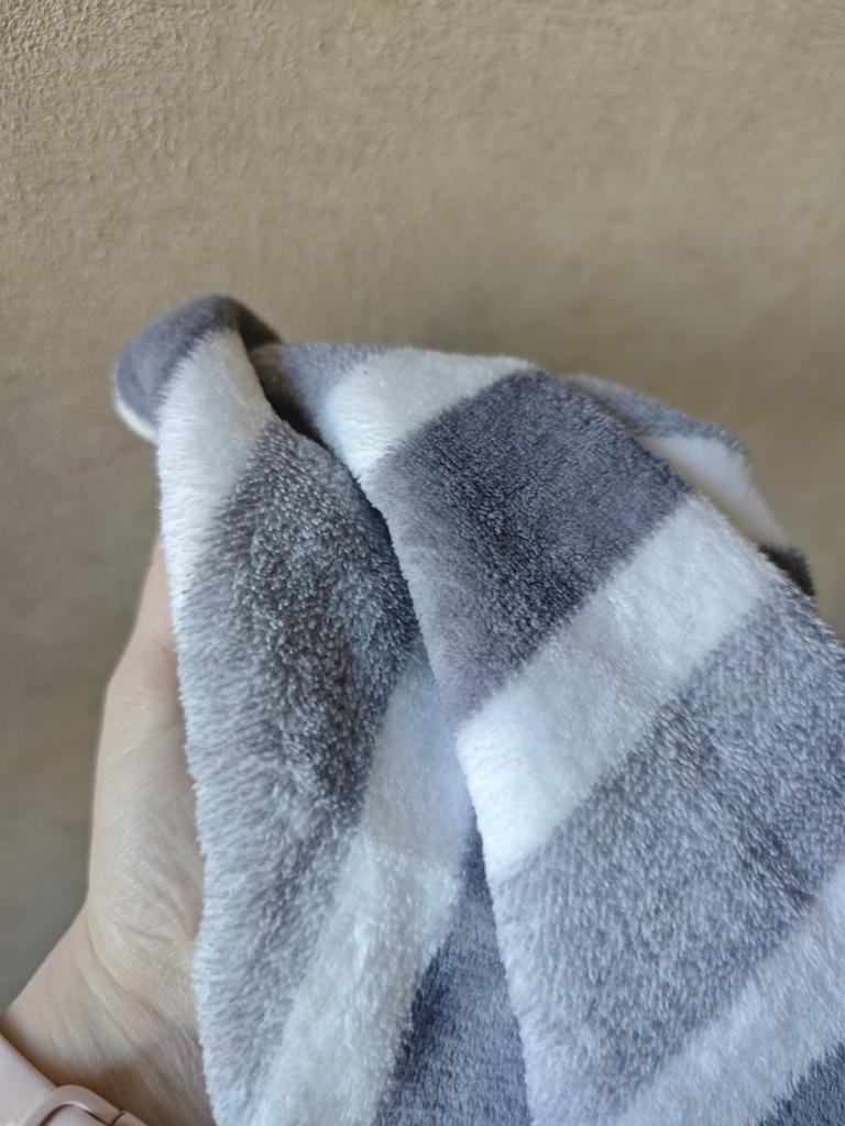 Cute super soft towel 🤍🤍🩵 The material is like a synthetic fluffy blanket. The towel absorbs well, dries quickly.