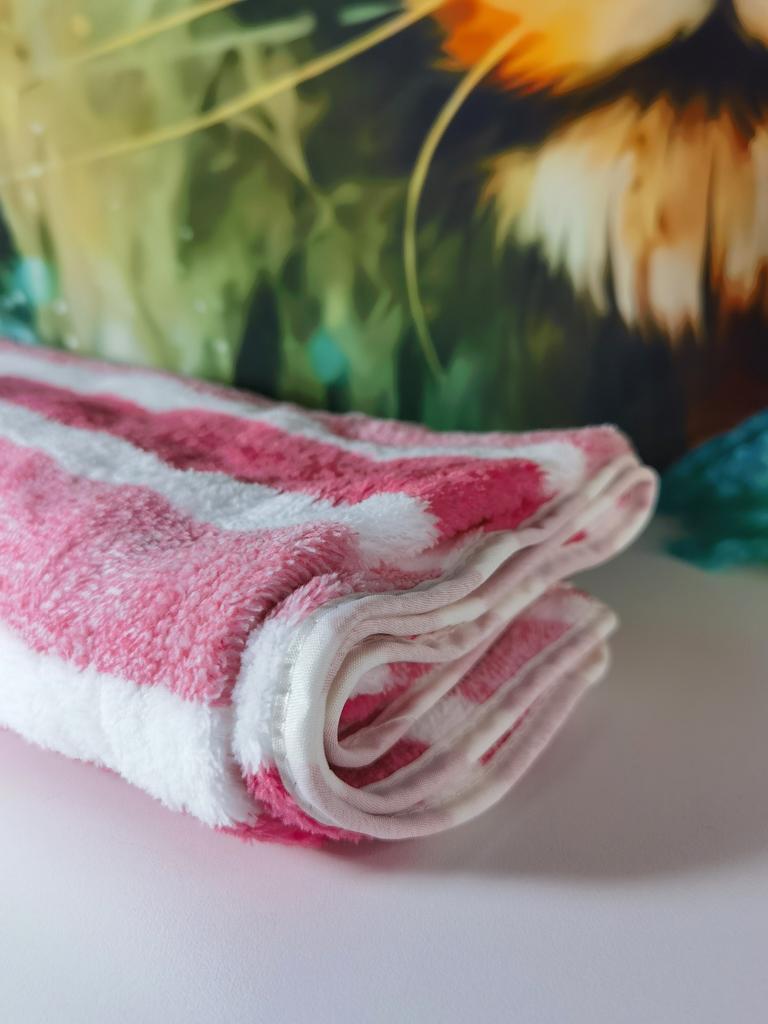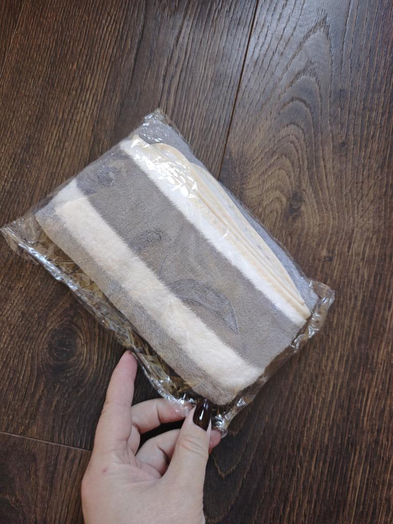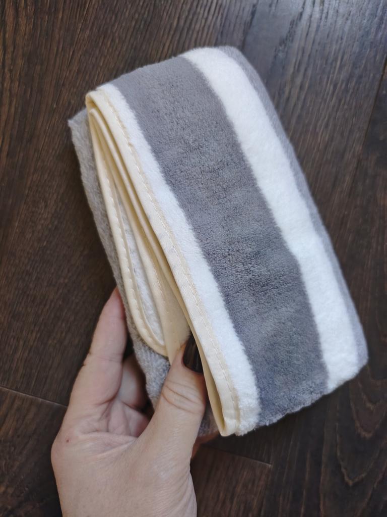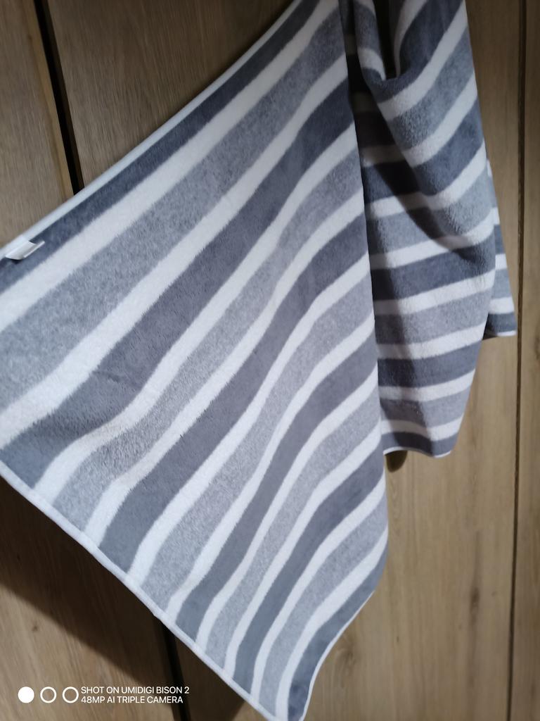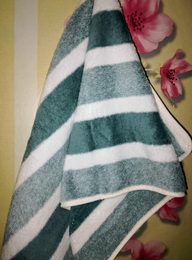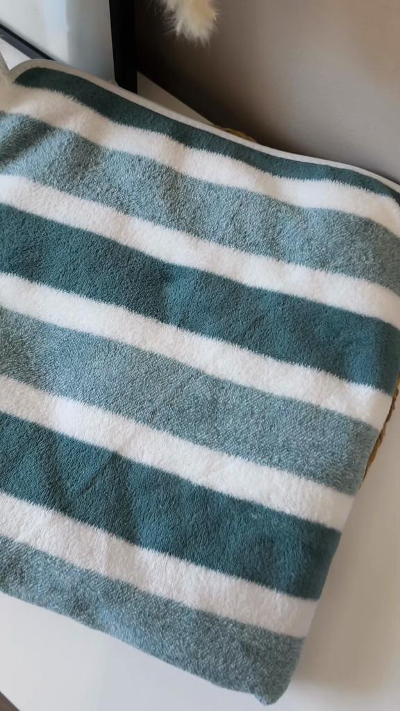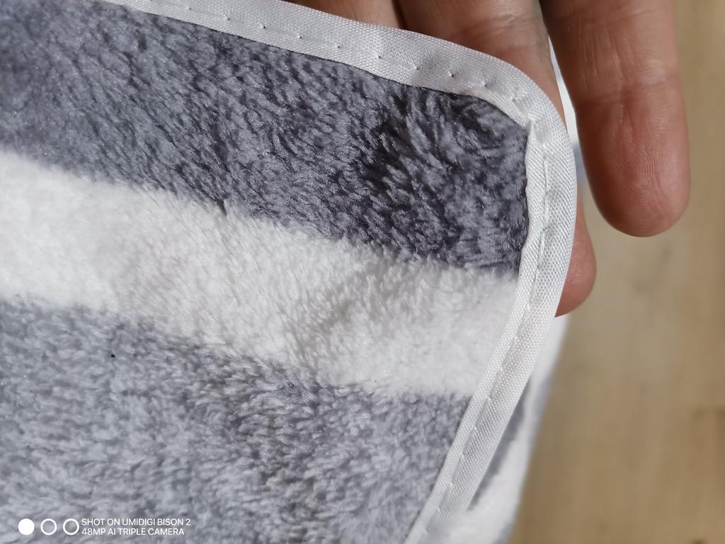 Cute super soft towel 🤍🤍🩵 The material is like a synthetic fluffy blanket. The towel absorbs well, dries quickly.