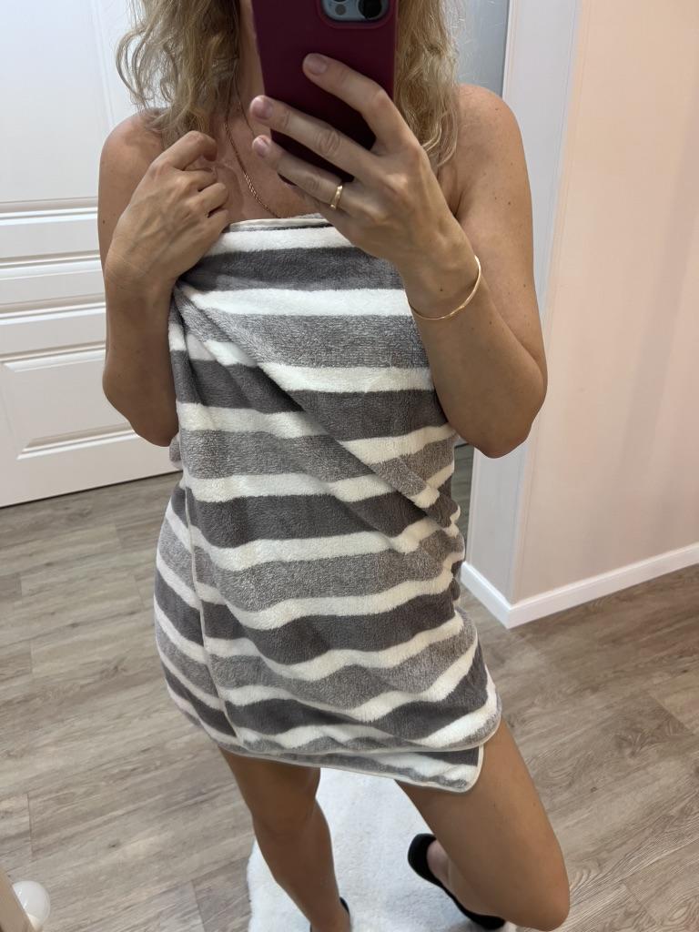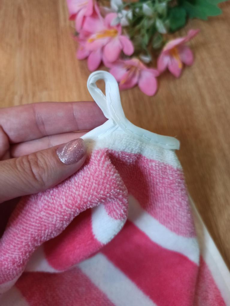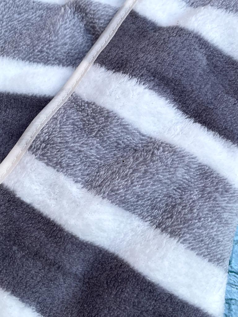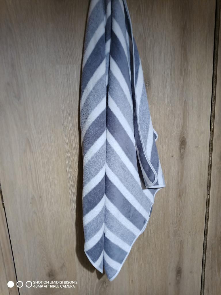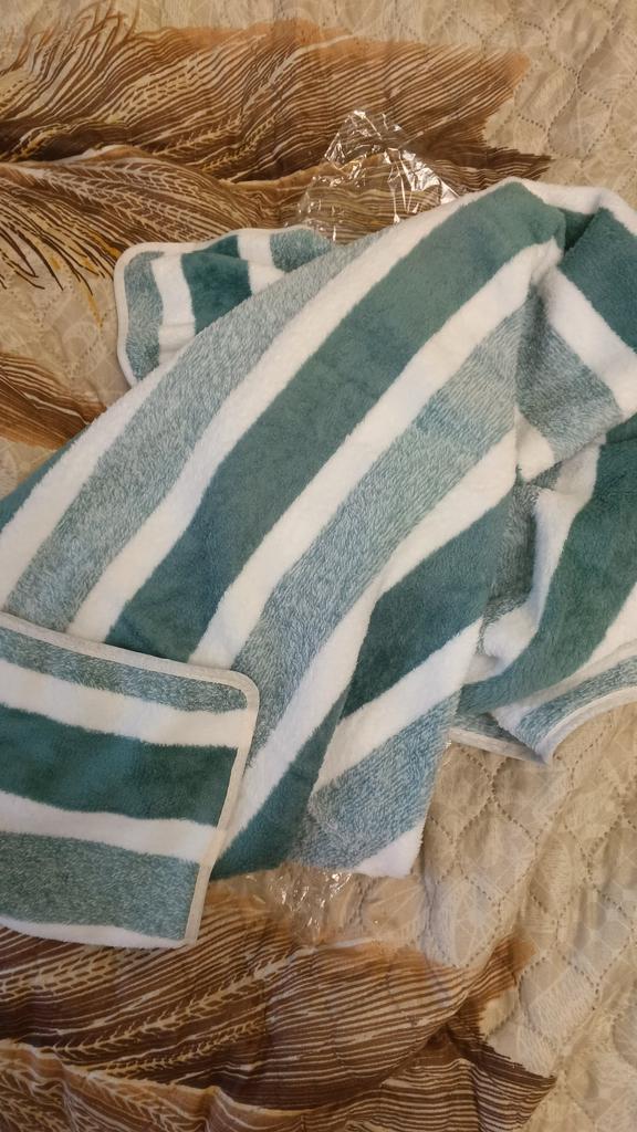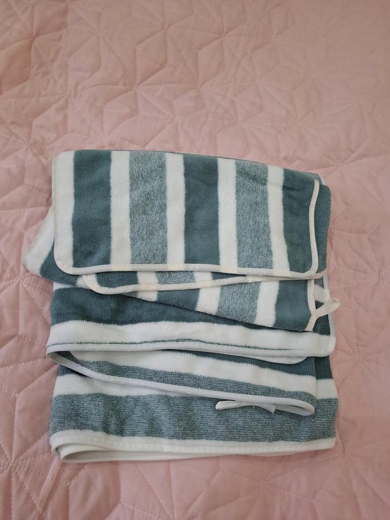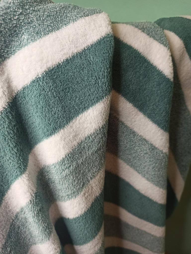 Cute super soft towel 🤍🤍🩵 The material is like a synthetic fluffy blanket. The towel absorbs well, dries quickly.