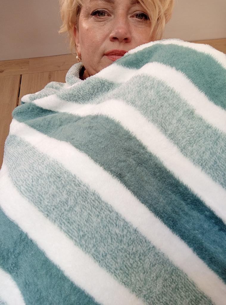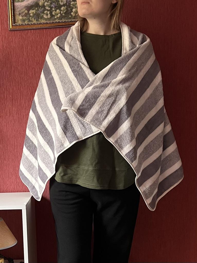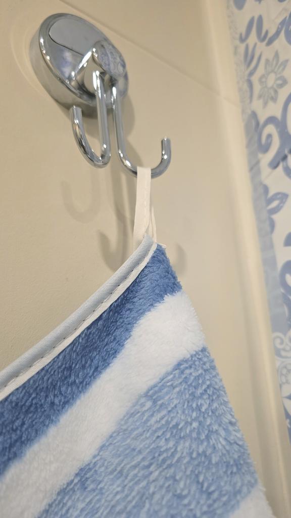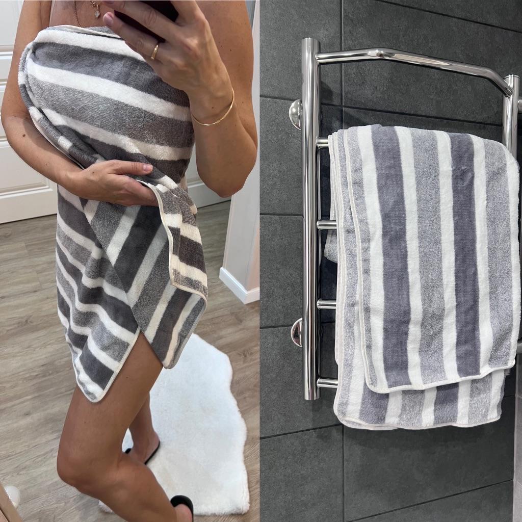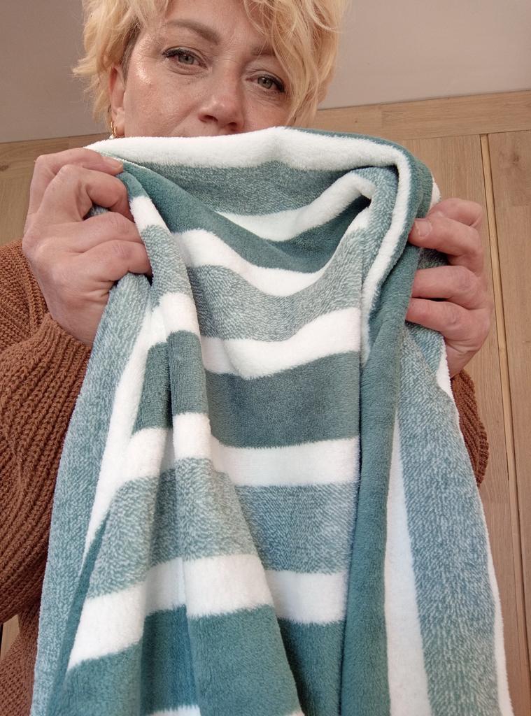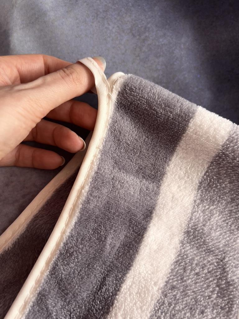 Cute super soft towel 🤍🤍🩵 The material is like a synthetic fluffy blanket. The towel absorbs well, dries quickly.