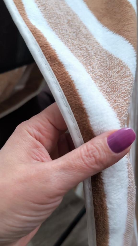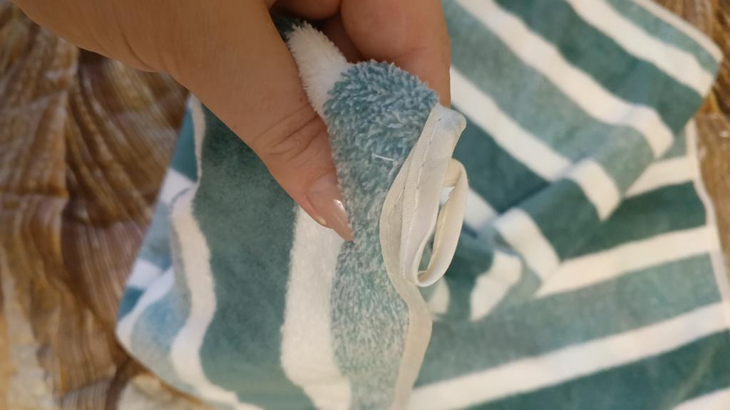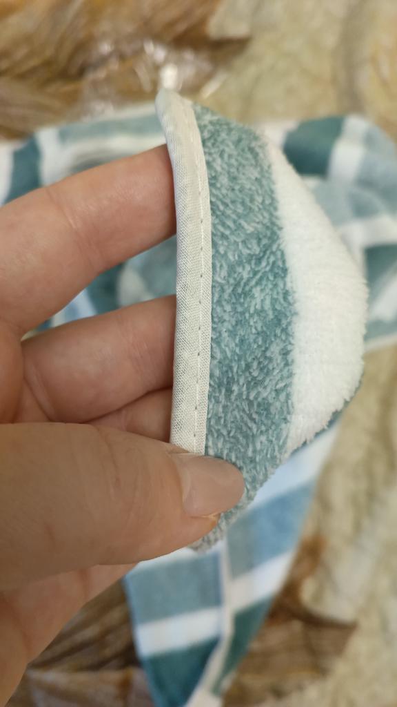 The towel itself is not bad, I hope (haven't washed it yet), but the edging is sewn so badly that I had to sit down at the sewing machine and fix it.