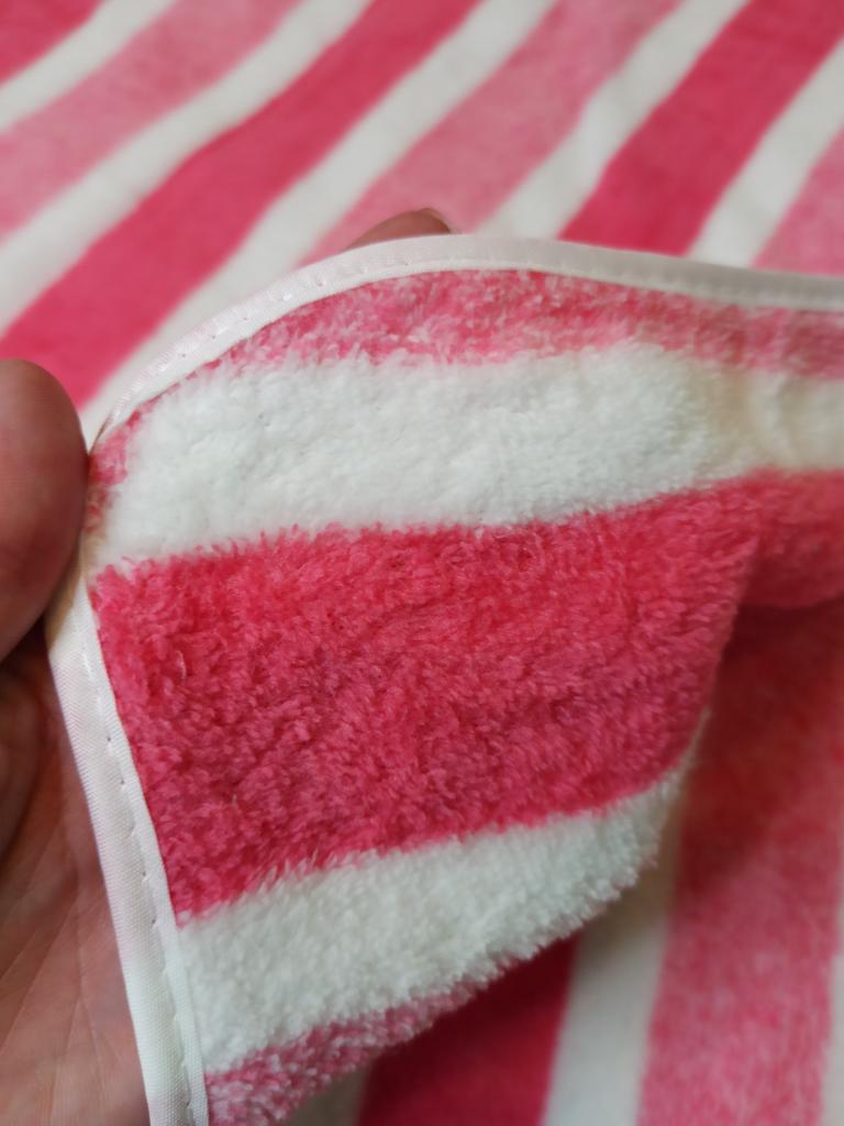 Good fluffy, very soft microfiber towel. Absorbs moisture well and dries quickly, has high wear resistance. Lightweight and takes up little space when folded. I recommend 🤗
