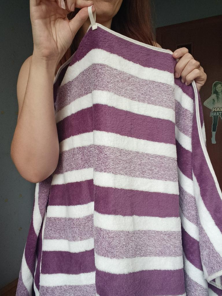 Large, soft, cozy towel for a symbolic amount of money🥰 I took the largest size 70x140, color purple. I must say that the other colors are also very pleasant, and it's hard to choose. Towel thin, soft, very pleasant, 100% cotton! I recommend.