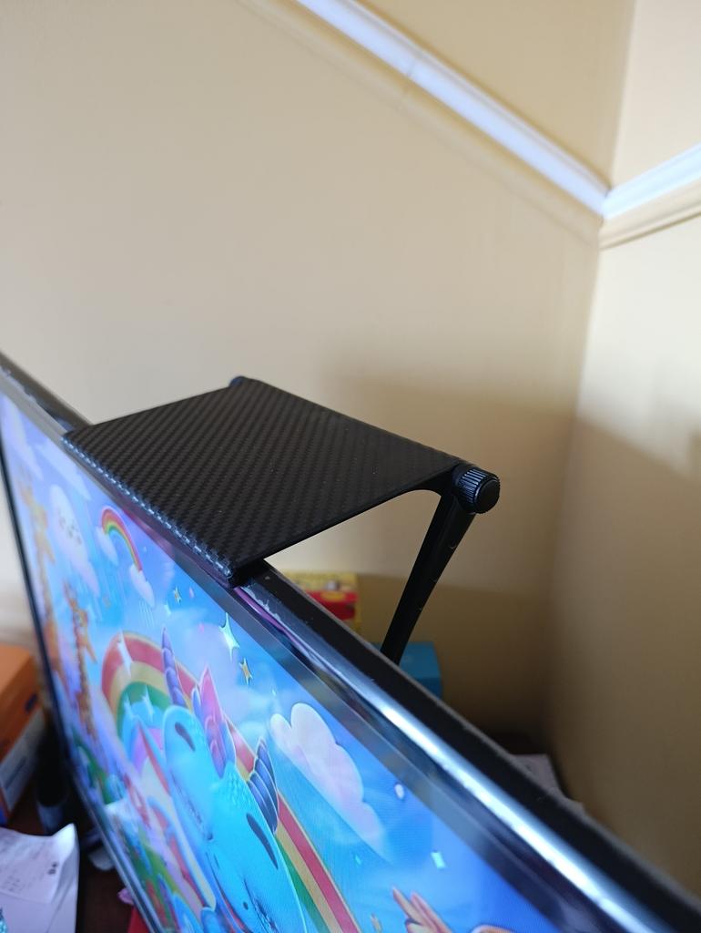 This adjustable universal shelf is the perfect solution for those looking to make the most of every corner of their workspace or entertainment center. With dimensions of 16cm \ 33cm, it easily fits on top of computer monitors or television screens, creating a stable surface to place accessories such as remote controls, routers, small speakers, or even decorative items. Its ergonomic and adjustable design allows for quick, tool-free installation, ensuring the shelf stays firm without damaging your electronic devices.. Made with durable materials in an elegant black finish, it integrates discreetly and professionally into any environment. It is an indispensable tool for maintaining order, eliminating desk clutter and allowing quick access to your everyday items. A simple, functional, and highly versatile accessory that transforms neglected surfaces into efficient and well-organized storage spaces.