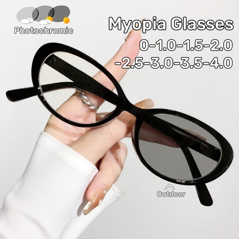 Fashionable Photochromic Myopia Glasses Retro Small Oval Women's INS Style HD Anti Blue Light Minus Diopter Eyeglasses