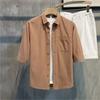 2024 New Summer Simplified Korean Edition Casual Loose Versatile Handsome Polo Collar Solid Color Mid Sleeved Shirt for Men