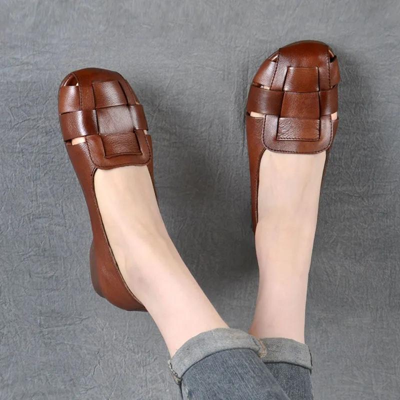 2024 New Braid Cutout Loafers Women's Brown Moccasins Female Vintage Shoes Slip On Leisure Retro Flats