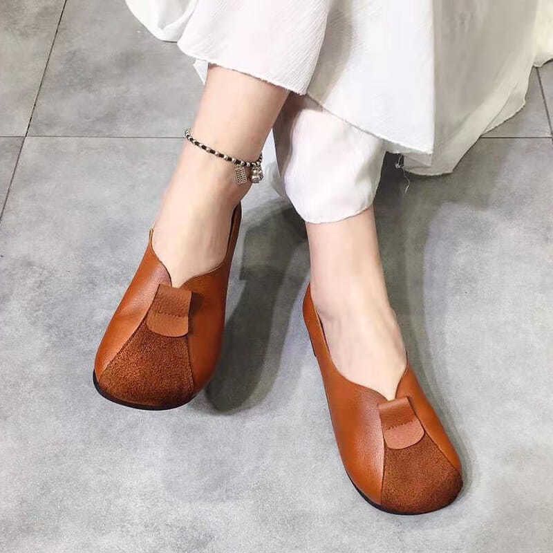 Wide Round Toe Granny Shoes Autumn Patched Mary Janes Shoes Ladies Retro Flats Mom Brown Retro Leather Loafers