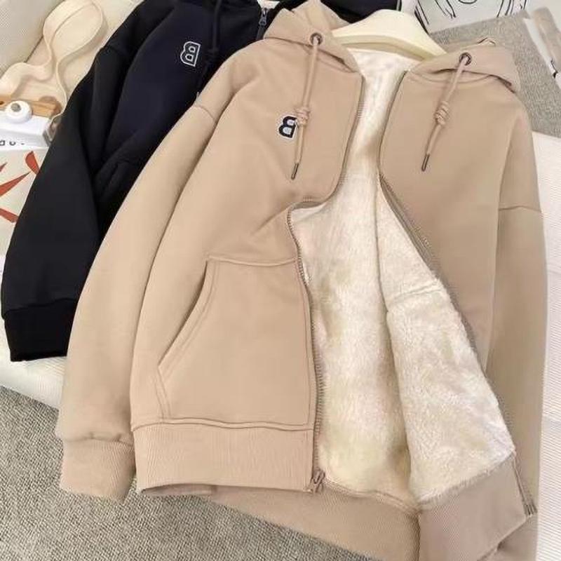 Autumn Winter Hoodie Coat Drawstring Thick Pockets Long Sleeve Fleece Jacket Thick Warm Fleece Sweatshirt