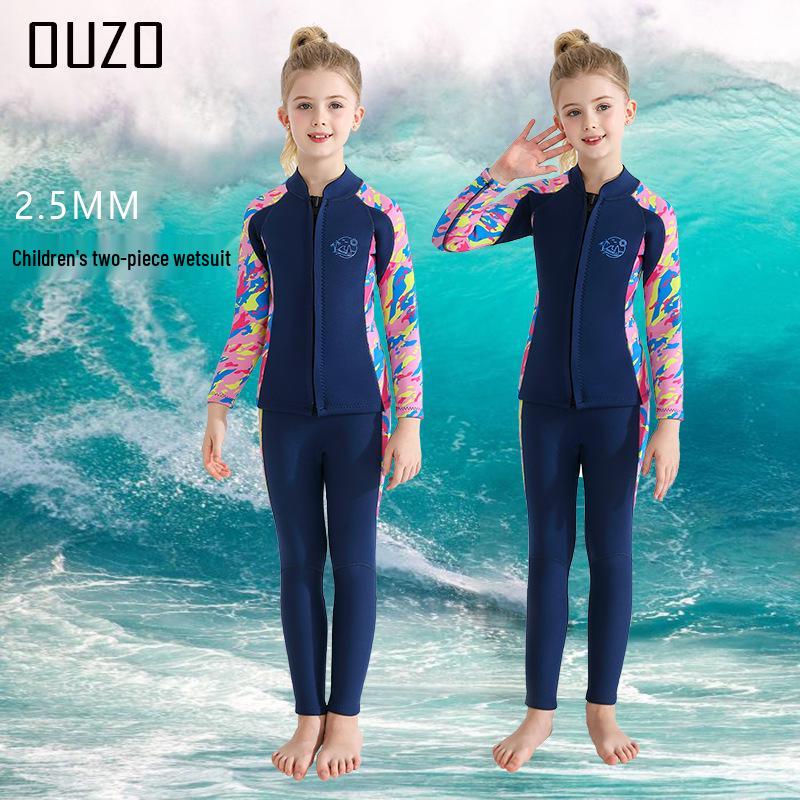 2.5mm Kids' Long Sleeve Two-Piece Diving & Surfing Wetsuit for Boys and Girls - Cold Protection & Jellyfish Shield