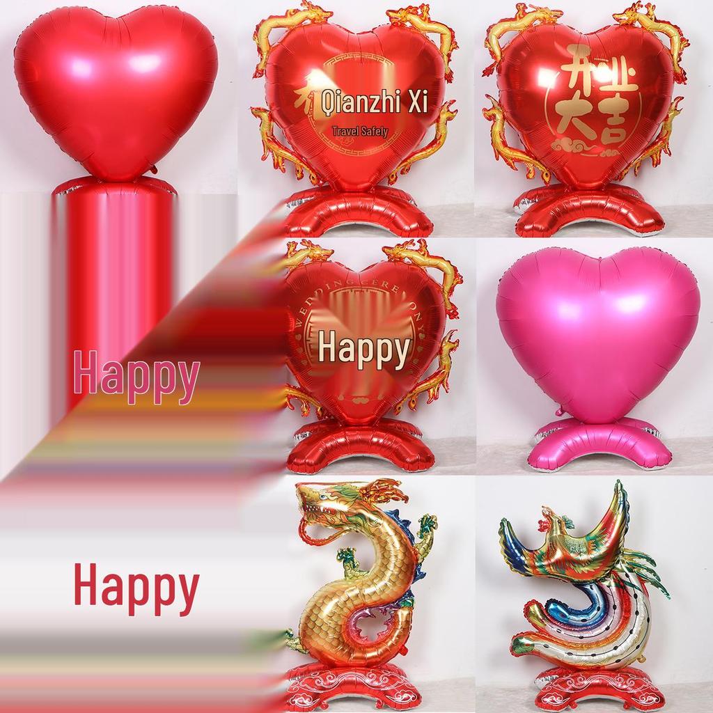 Extra Large Heart Balloon with Auspicious Dragon and Phoenix Foil Design for Housewarming Celebrations