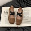 Leopard Print Bow Inner Height Increase Ballet Shoes Summer Retro Temperament Single Shoes Women's Suede Round Head Shallow Mouth